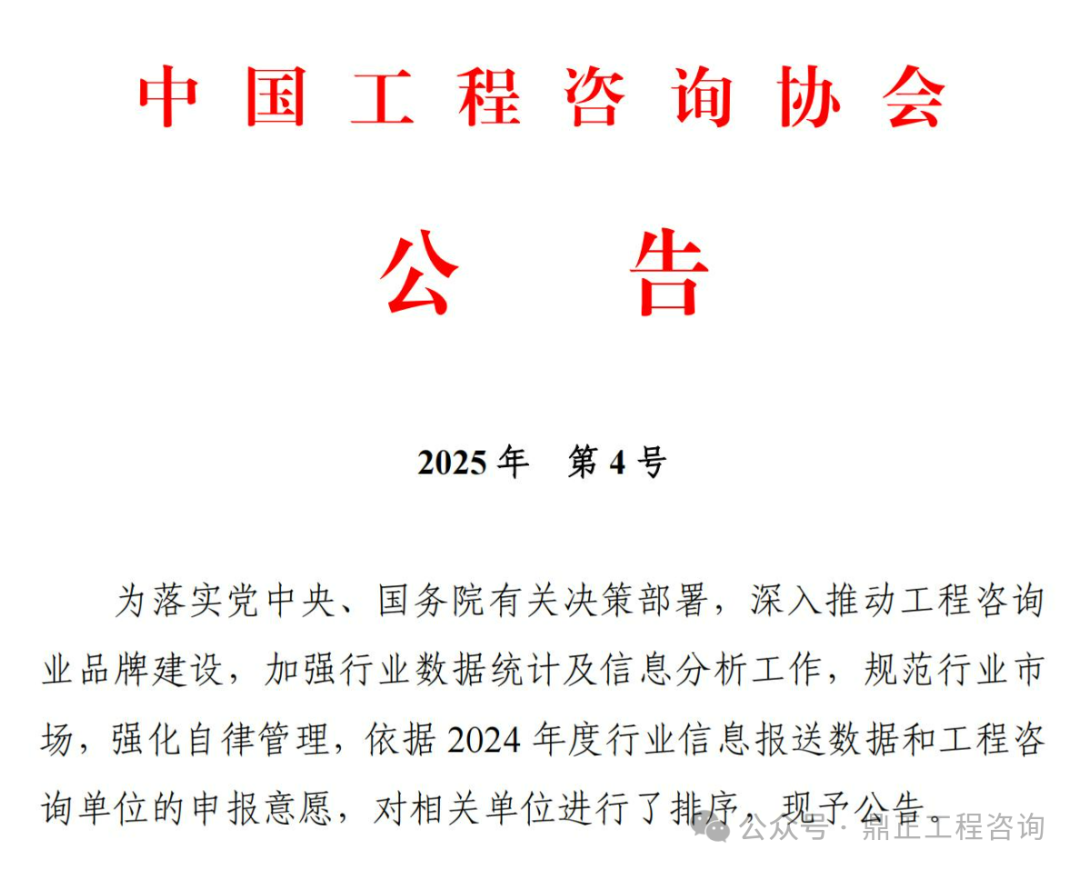本次评选严格遵循《中国工程咨询协会章程》及相关规定,在总结前期试行经验的基础上,对《中国工程咨询协会工程咨询单位排名办法》进行了修订完善,最终形成新版《工程咨询单位排名办法》。中国工程咨询协会依据该办法,对2024年度参与行业统计调查的工程咨询单位进行了科学、公正的评估,并据此发布百强排序榜单。